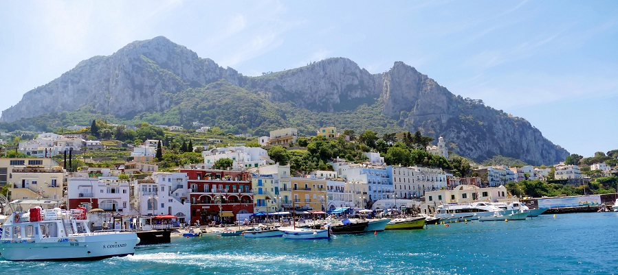 Außerdem besuchen wir die Insel Capri , die mit ihren blühende Landschaften, dem azurblauen
